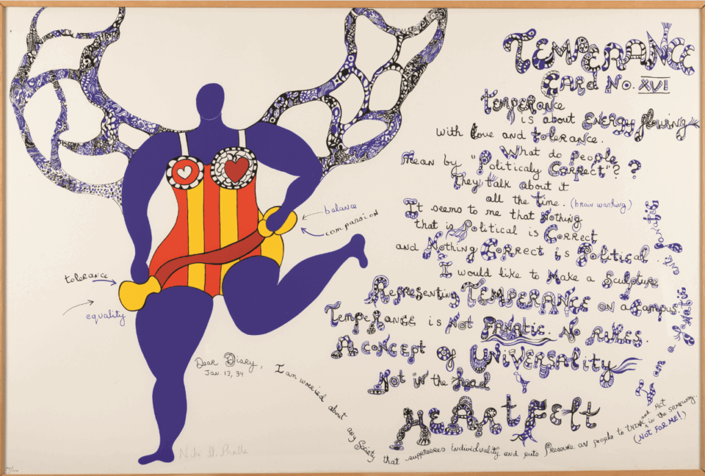 Comentário: nesta obra, Niki de Saint Phalle reflete sobre outra constante em sua produção: a carta do Tarô, Temperança. Para a artista, era esta a carta que mais a representava.